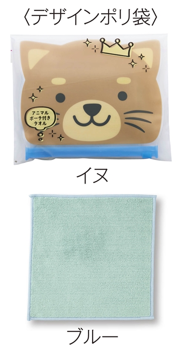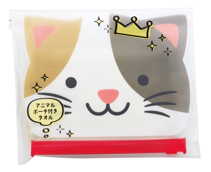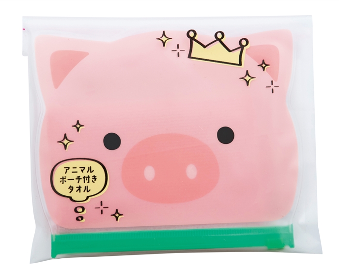 タオルが濡れても大丈夫!キュートなアニマルのPVCポーチ付きですから。