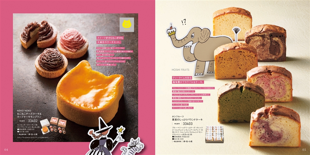おいしいスイーツが何者かに盗まれた!?「犯人の影を見た!」という目撃情報を元に、魔女パティシエと相棒のネコが犯人を追い詰めるミステリー仕立てのギフトカタログ。4 つのストーリーを読み進めながら、お好きなスイーツをお選びいただけます。