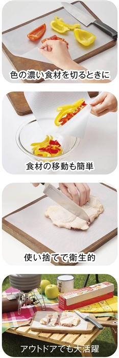 色の濃い食材を切る時に/カットした食材の移動もラクラク/使い捨てで衛生的/アウトドアでも洗い物を減らせる!