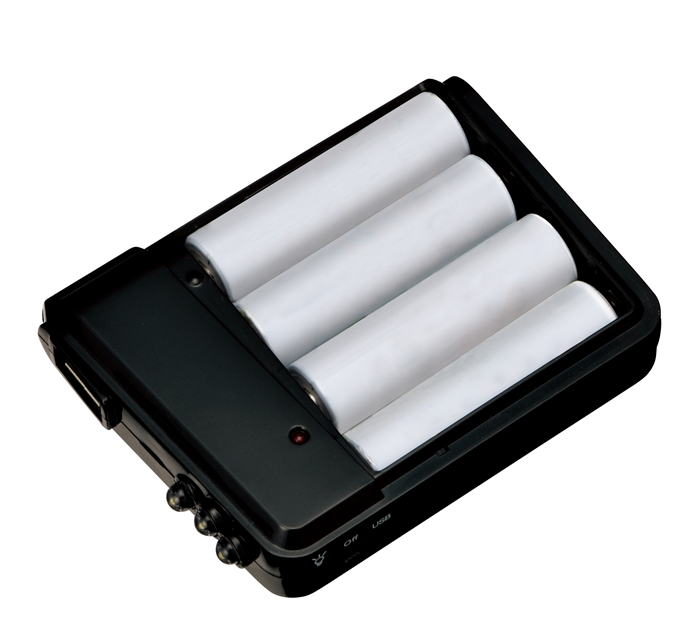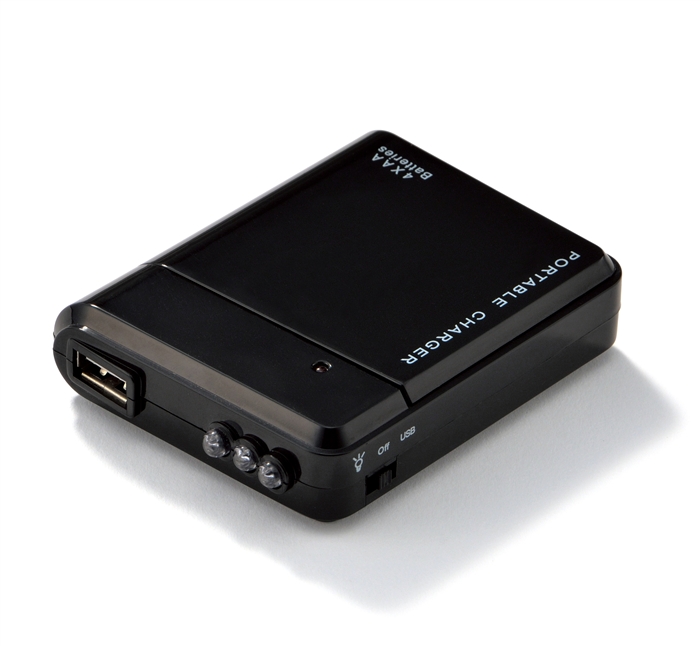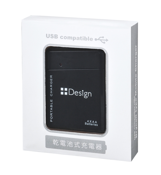 単3型電池4本で充電可能で、LEDライトも備えており、緊急時に手元を照らすのに便利です。一般的なモバイルバッテリーはそれ自体の充電が必要ですが、乾電池式は急な停電時にも安心。また、窓空きパッケージは名入れが映え、防災グッズとしてだけでなく企業や店舗のオリジナルノベルティや販促品として活用できます。