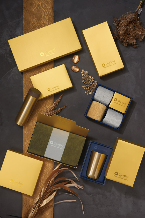 煌めくゴールド箱入りのギフト商品。