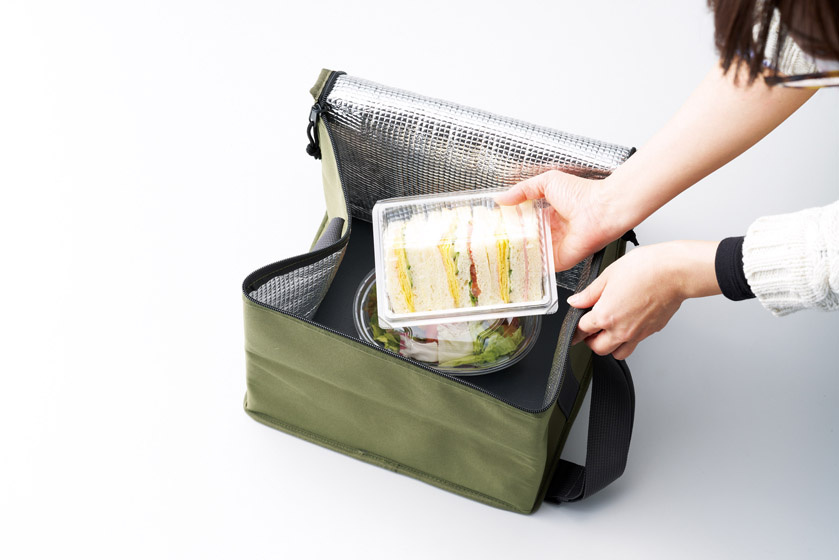 | 素材 | 表/ポリエステル、内/アルミニウム・PE、ベルト/PP、底板/PE |