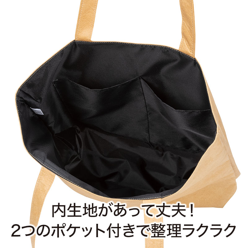 内生地も、ポケットも付いた贅沢仕様。丈夫なタイベック地使用で、長くお使いいただけるので会社ロゴなどを印刷すれば、さらにプレミアム感ある逸品に