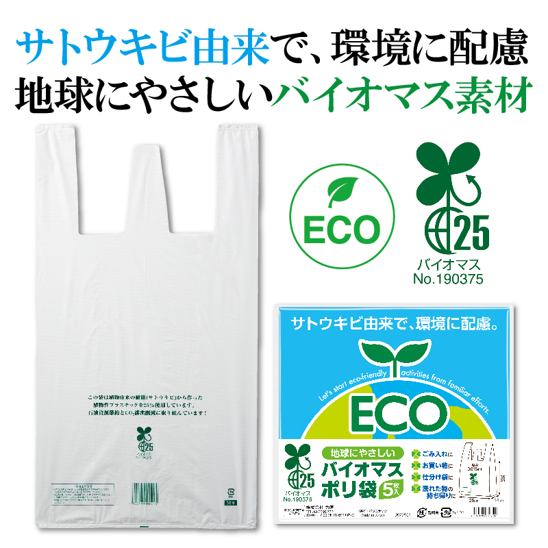 地球にやさしい バイオマス25%ポリ袋(5枚入り)