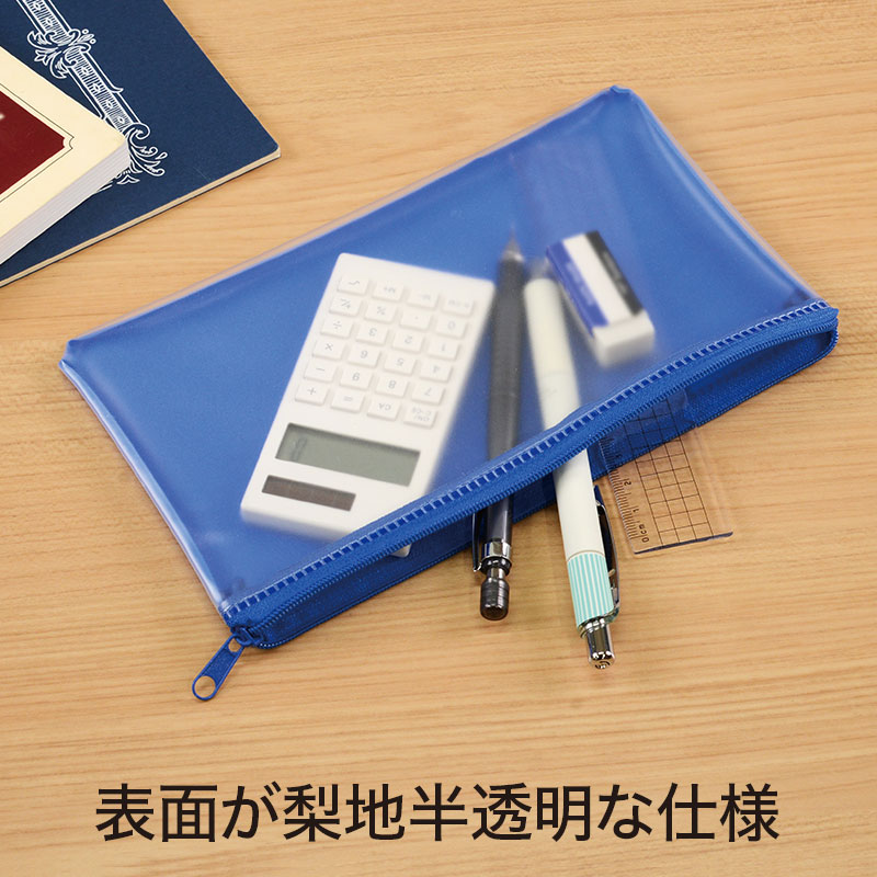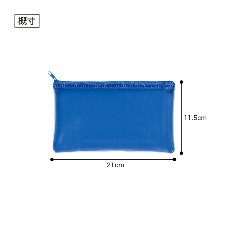 使い方いろいろで、いくつもらっても困らないポーチ。企業カラーに合う色を4色からお選びください。前面はマットな質感の半透明です