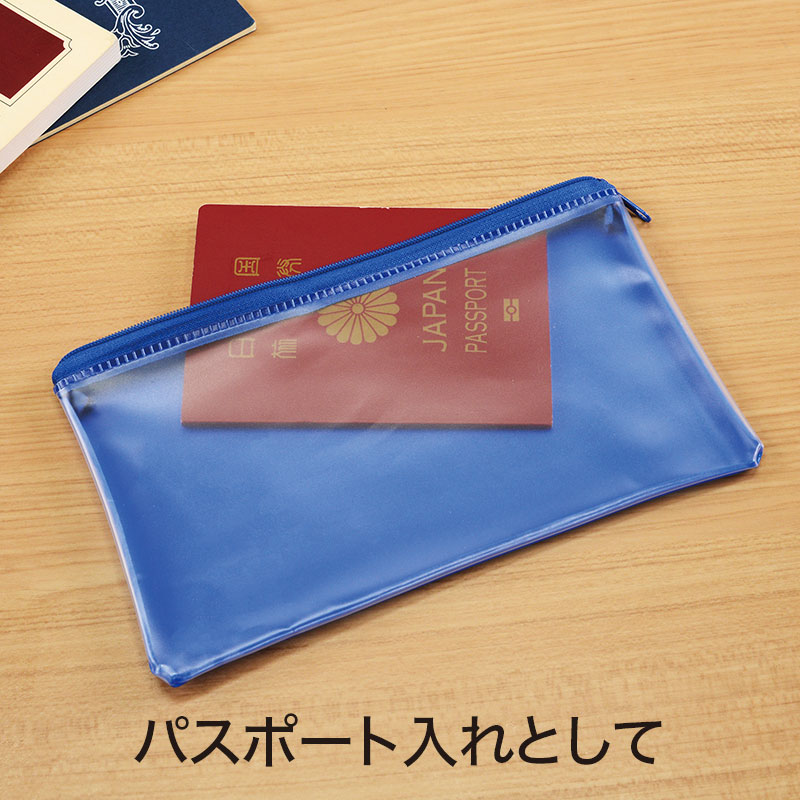 ログイン使い方いろいろで、いくつもらっても困らないポーチ。企業カラーに合う色を4色からお選びください。前面はマットな質感の半透明です