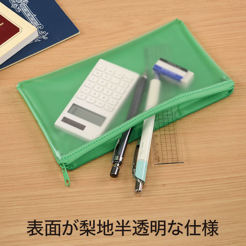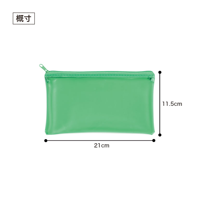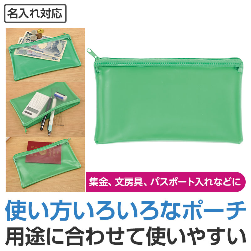 使い方いろいろで、いくつもらっても困らないポーチ。企業カラーに合う色を4色からお選びください。前面はマットな質感の半透明です