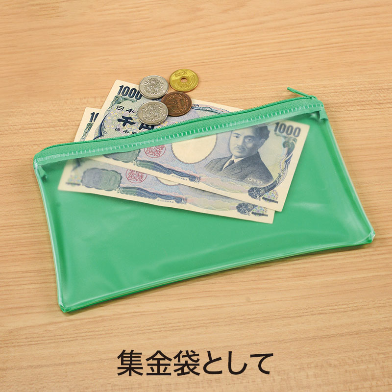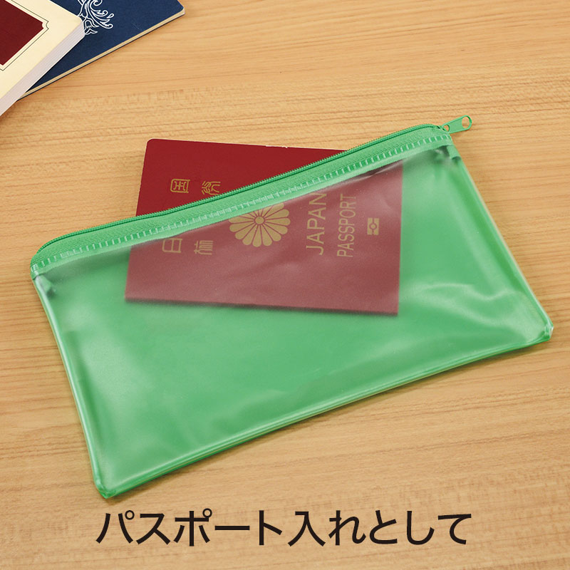 ログイン使い方いろいろで、いくつもらっても困らないポーチ。企業カラーに合う色を4色からお選びください。前面はマットな質感の半透明です
