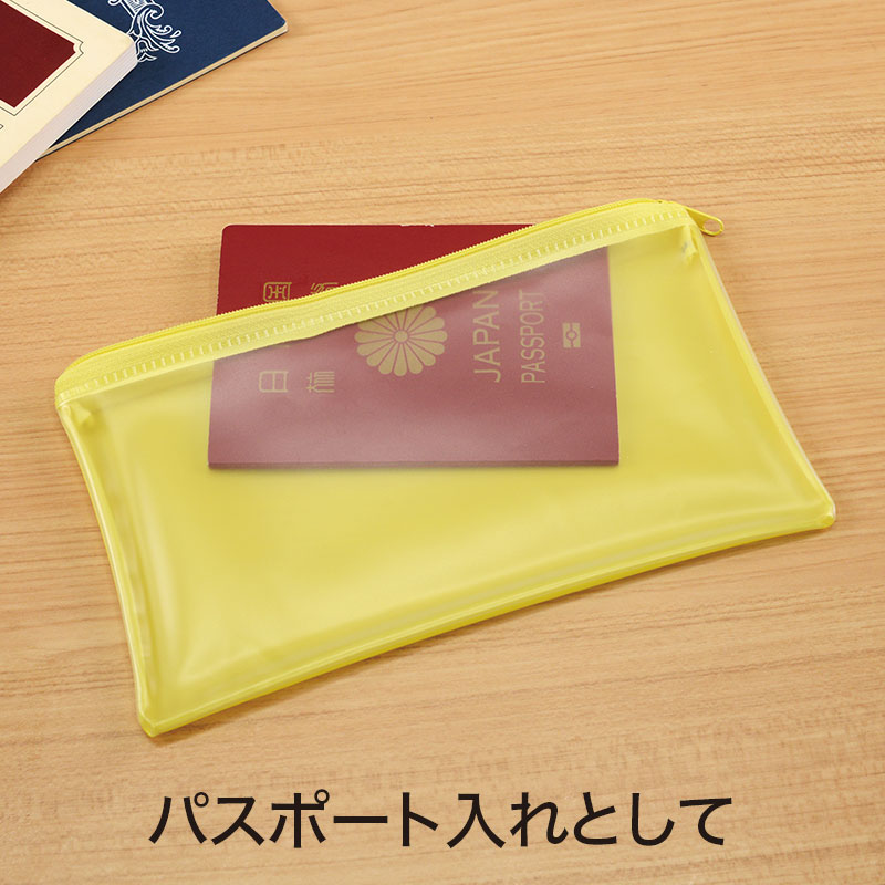 ログイン使い方いろいろで、いくつもらっても困らないポーチ。企業カラーに合う色を4色からお選びください。前面はマットな質感の半透明です