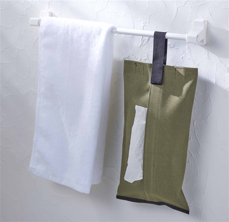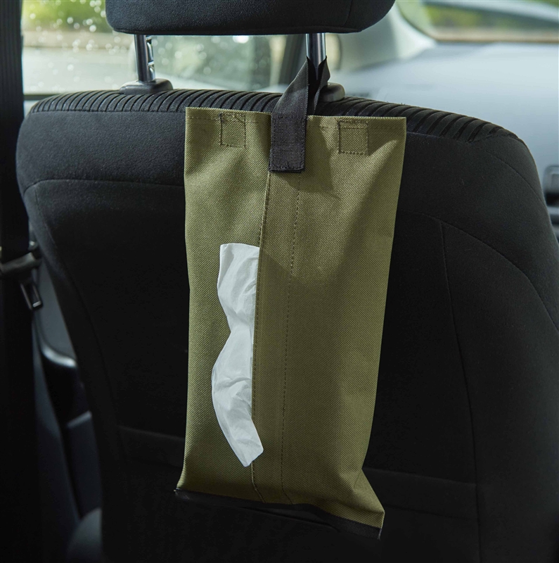 ソフトパック専用のティッシュカバー、ループ付きフックで車やお部屋に取り付けられます。