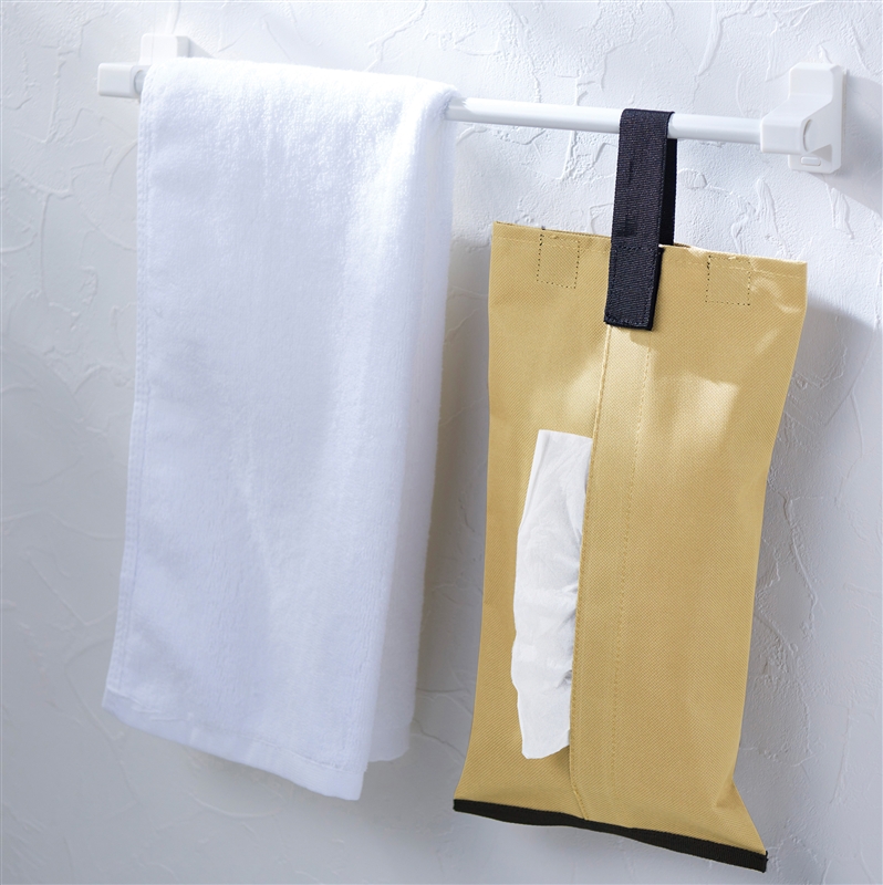 ソフトパック専用のティッシュカバー、ループ付きフックで車やお部屋に取り付けられます。