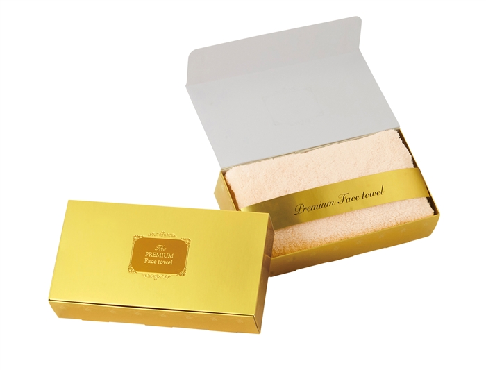 プレミアムフェイスタオルは、風合いから化粧箱に至るまで、上質を追求した逸品です。ゴールドの化粧箱にデザインを施し、特別感を演出。極上の肌触りを誇り、贈り物や記念品として最適。住宅展示場や金融業界に人気で、肌寒い季節のノベルティや景品としてもおすすめです。