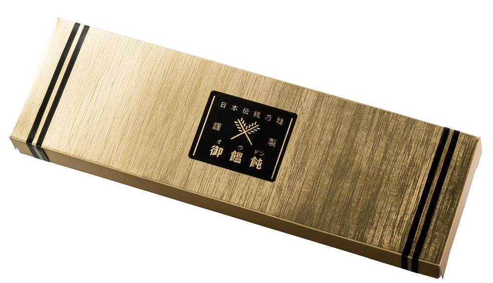 定番のうどんを輝く金色のパッケージに詰めました。見栄えがするので、贈り物としてもプチ贅沢を感じて頂ける一品です。