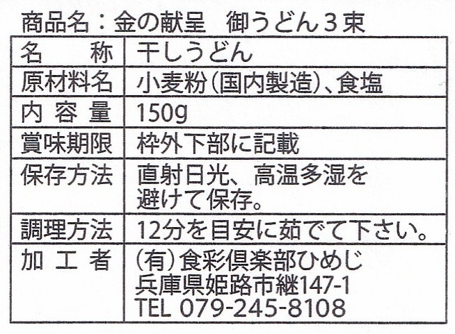 金の献呈 御うどん3束