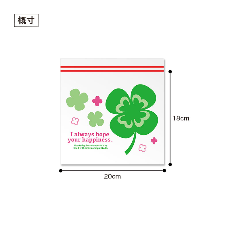 お客さまの幸運を願って、人気のジッパーバッグにクローバー柄