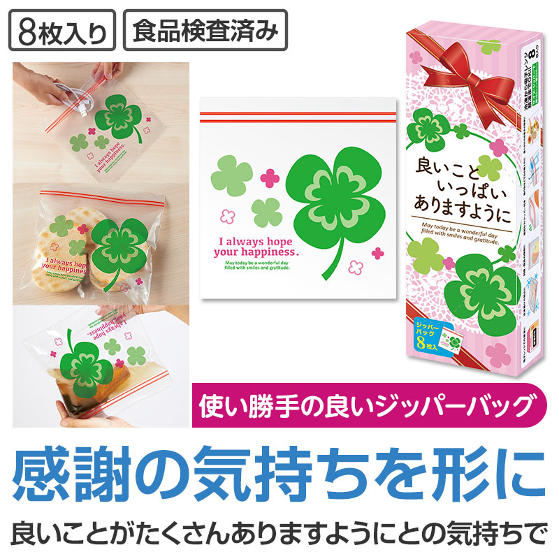 良いこといっぱいありますように 四つ葉のジッパーバッグ(8枚入り)