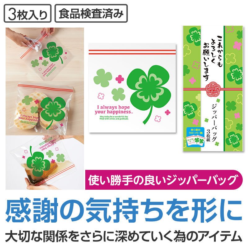これからもよろしくお願いします 四つ葉のジッパーバッグ(3枚入り)