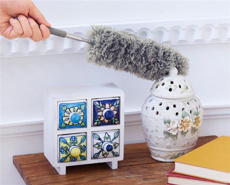 全長約37cmから最長約85cmまで伸縮可能で、高い場所もラクラク届く。ホコリが溜まったらゴミ箱などで簡単に払い落とせます。また軽量設計で疲れにくく、キュートなねこちゃんのパッケージは特に高ポイント。お掃除シーズンに猫の手を借りて、ホコリや汚れから解放されましょう。
