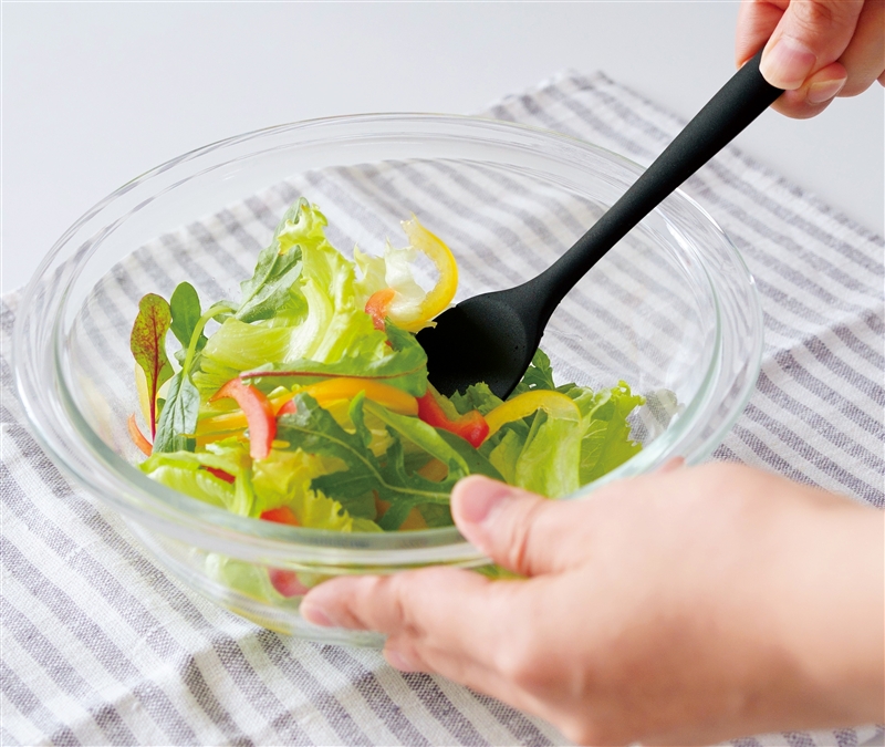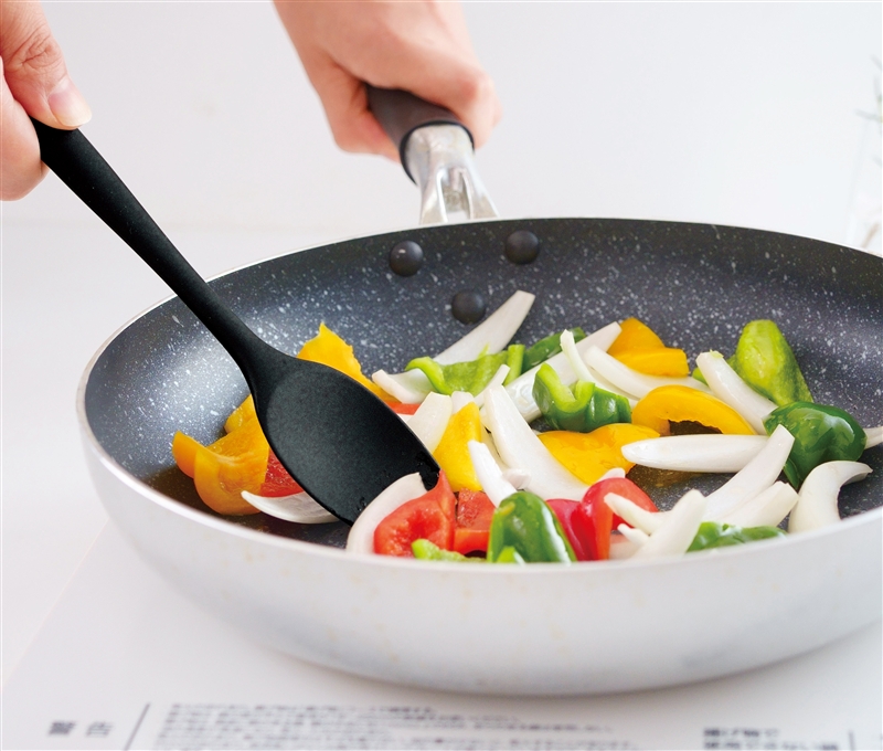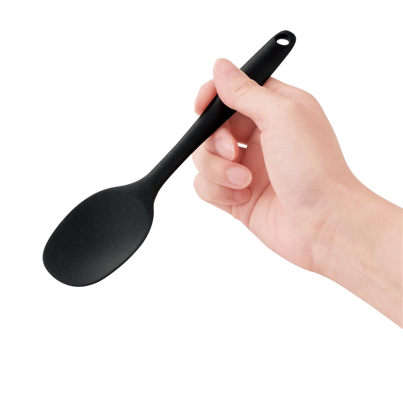 適度なしなりで鍋肌に沿い、食材を無駄なくすくい取ります。黒色で色移りが目立ちにくく、耐熱温度が高いシリコーン素材の調理スプーンなので、炒めものや煮物に幅広く活躍!毎日使えるキッチンの魔法使いです。化粧箱入りで来場記念品やイベントに最適!