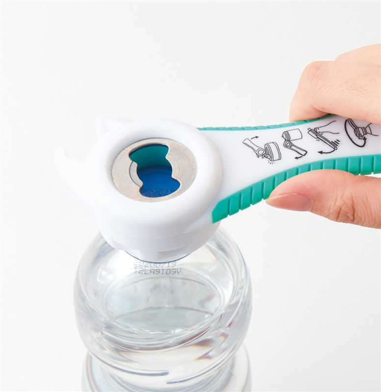 4サイズの直径に対応し、多機能オープナーは5つの使い方(ペットボトルキャップ、缶のプルトップ、栓抜き、缶詰、瓶の蓋上げ)が可能。高齢者や子供、手荒れしやすい方などにおすすめ。思いやりのプレゼントとして好評で、介護関連のイベント・講習の参加記念品としても適しています。