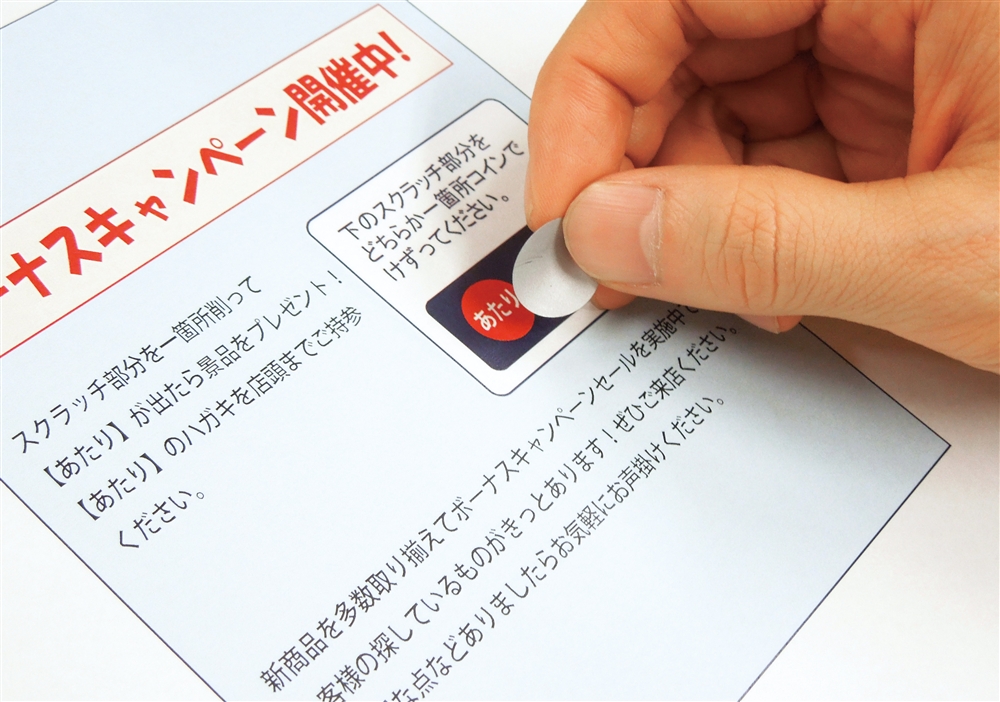 あらかじめ印字してある文字の上に貼って使用するスクラッチシールです。
