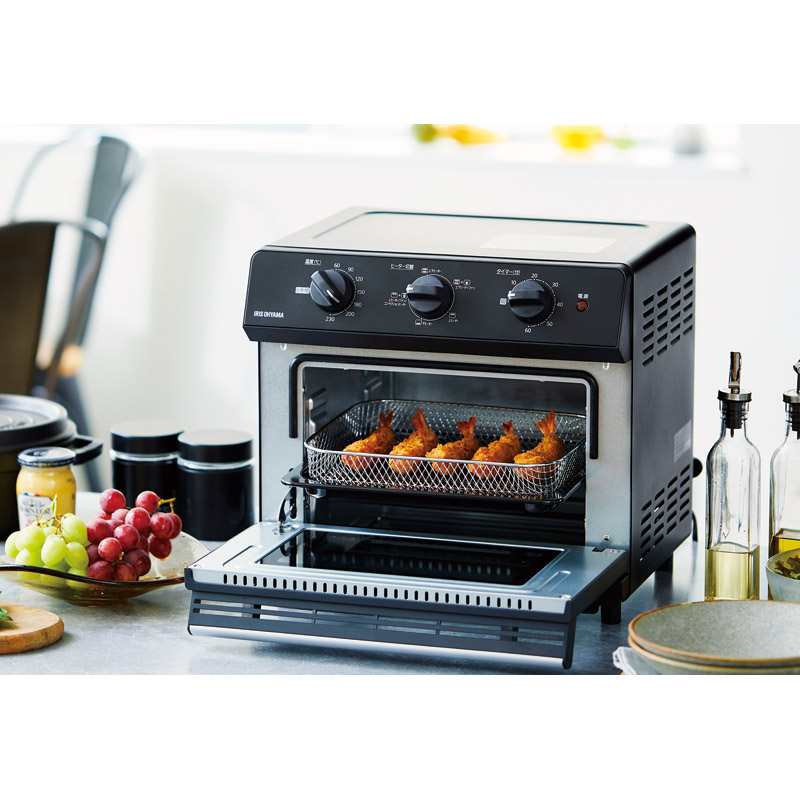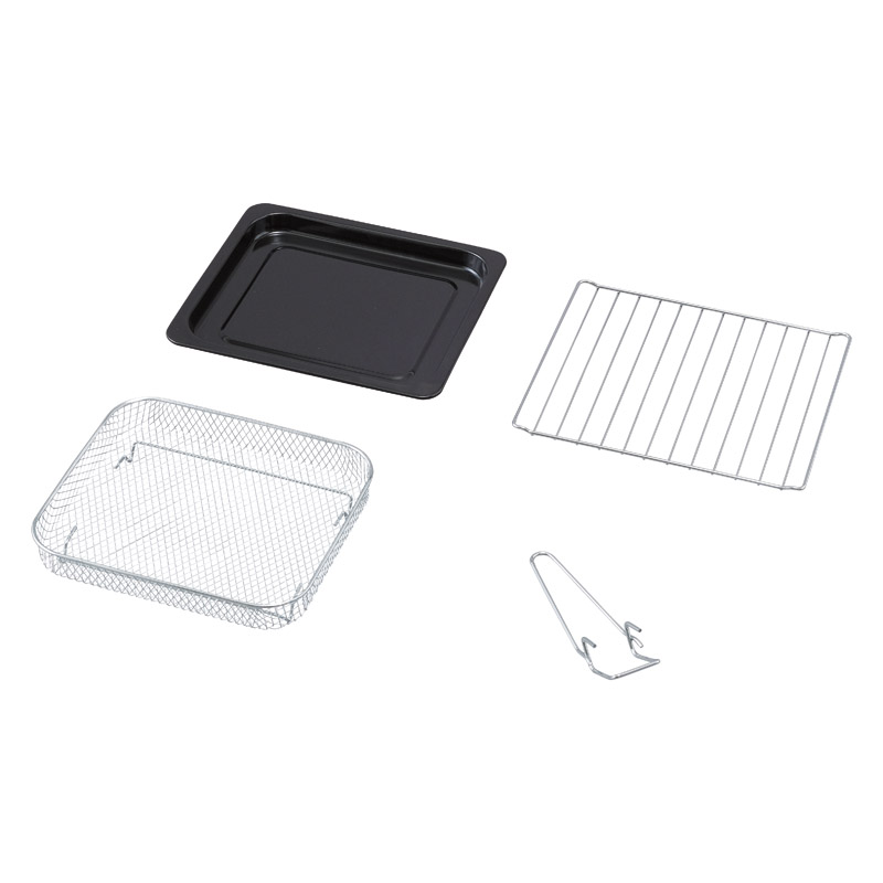 ノンフライ調理とRe;cookで揚げ物をもっとおいしく簡単に調理できるノンフライ熱風オーブンです。これ1台で様々な調理が可能です。ローストチキンなどの大きな食材も調理可能です。・焼き網・トレー・バスケット・ハンドル付。・60分タイマー。