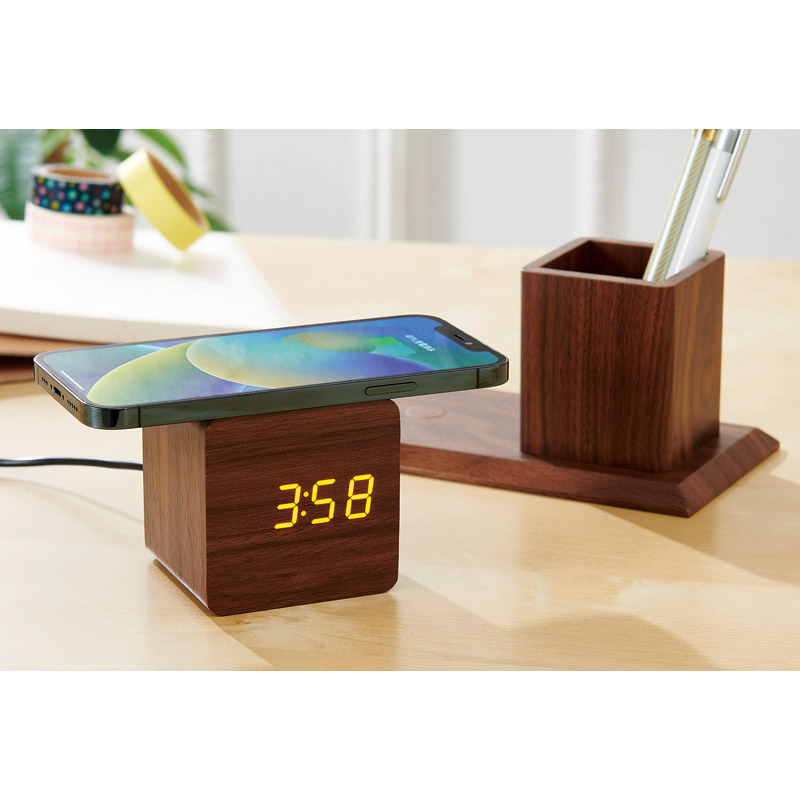 ペンホルダー付ワイヤレス充電クロック