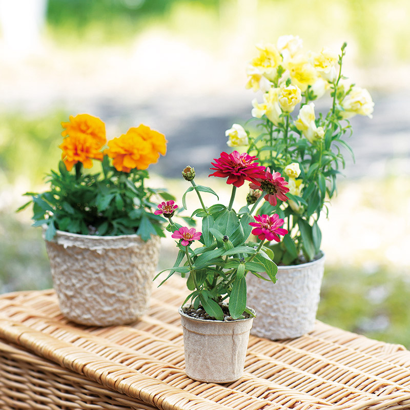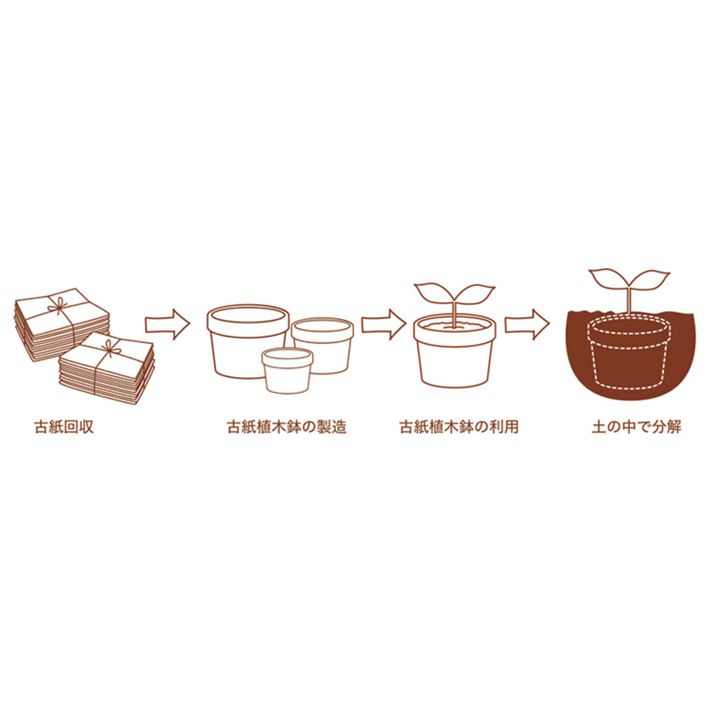 育苗後、鉢のまま定植することができます。そのまま土に埋めておくと年月をかけて分解され土に還ります。