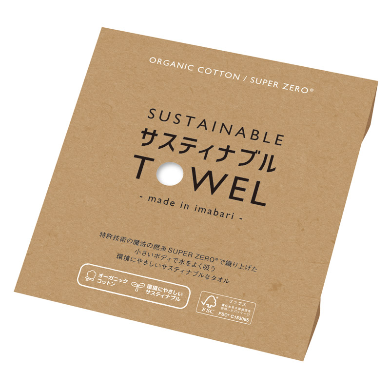 ちょっとした傷などで廃棄処分するはずだったタオルのきれいなところをハンカチに生まれ変わらせたアップサイクル商品です。吸水性に優れた「SUPER ZERO」の糸を使用しFSC認証パッケージ入りです。