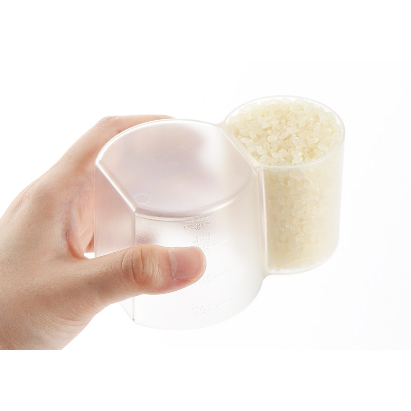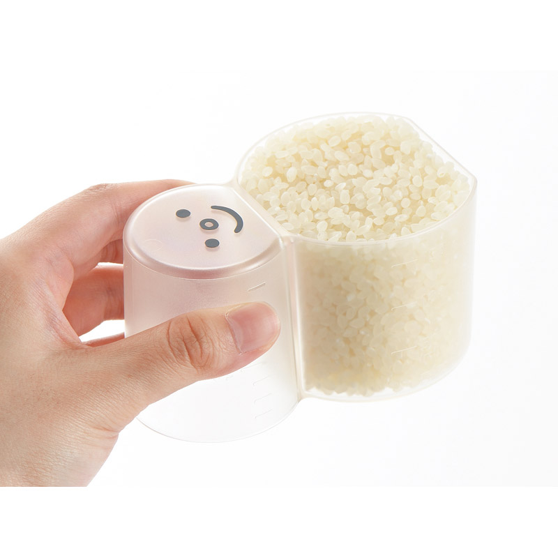 0.5合と1合をくっつけたら、ゆきだるまのカタチになりました。便利でかわいいお米の計量カップです。