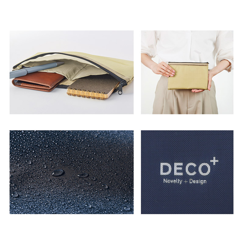 メッシュ×テントクロスの3層構造により、見せたい物と見せたくない物を分けて収納可能。メッシュごしに名入れが可能です。小物の収納に便利な3つの内ポケット付き。