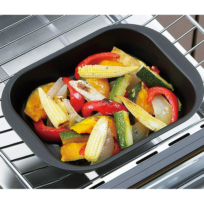 グリルを汚さず本格調理ができます。ふっくら蒸し焼きもできる蓋付です。
