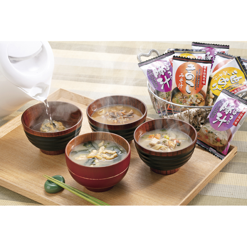 凍結乾燥の技術でお湯を注ぐだけでおいしさそのままのお味噌汁詰合せ。