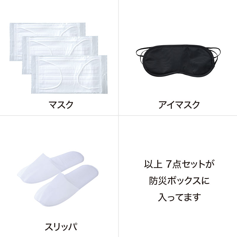 ボックスティッシュケースに入った防災7点セット