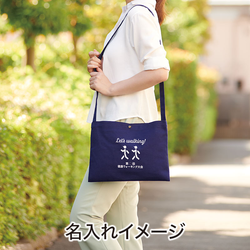 ログインA4サイズも入る、シンプルで便利なサコッシュ。オリジナル印刷を入れれば、ノベルティ・販売品として需要の高い仕様です