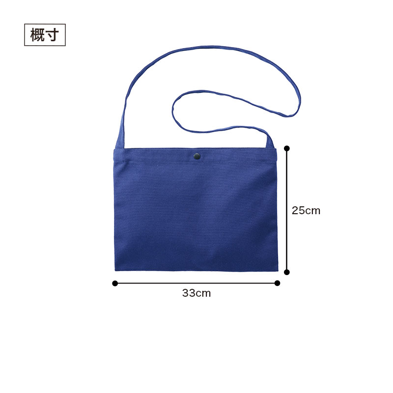 A4サイズも入る、シンプルで便利なサコッシュ。オリジナル印刷を入れれば、ノベルティ・販売品として需要の高い仕様です