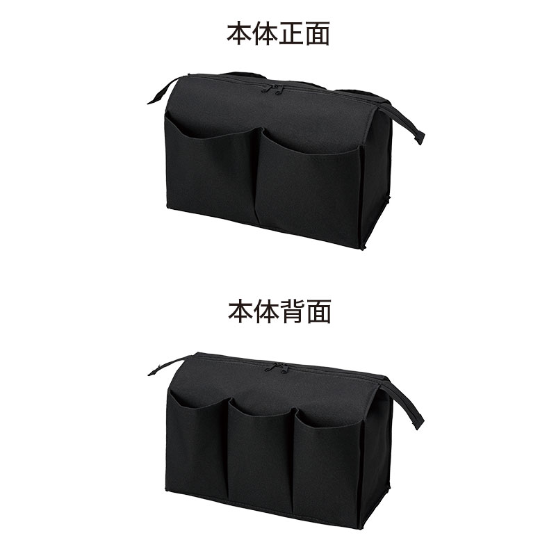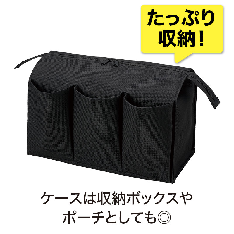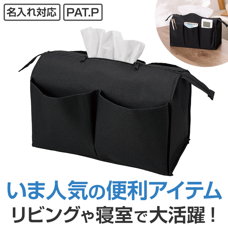 リモコンや文具など、身近なものを収納できる便利なポケットが表裏で合計5つ。ボックスティッシュが2段重ねてしまえる人気の仕様です
