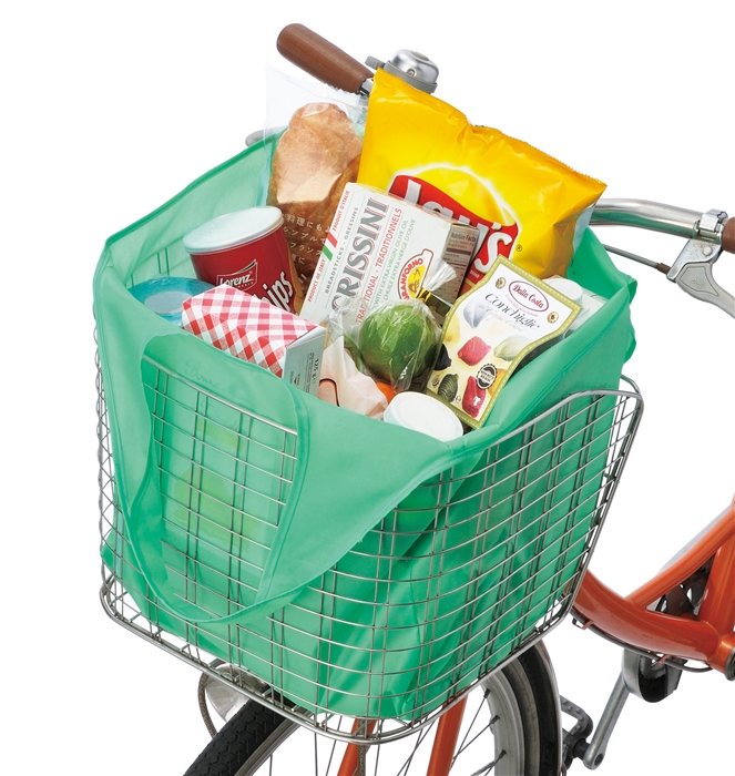 日常の必需品として活躍する携帯便利なエコバッグ!マチが広く、買い物カゴや自転車のカゴにフィットします