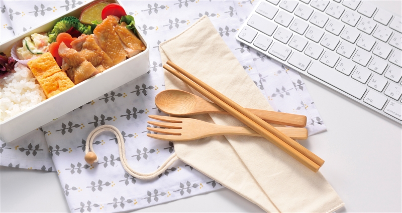 エコロジー商品やSDGs商品として、ロゴやマークの名入れをして配布すれば、企業やお店のイメージアップにつながります。竹と木を使用しているのでプラスチックを使用せずに繰り返し使えるところがポイントです。ケースは布製で持ち運びの際に音がしにくく、洗いやすい形状の大人向けランチアイテムです。