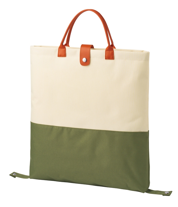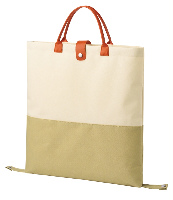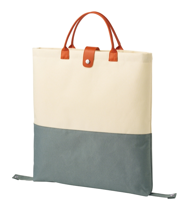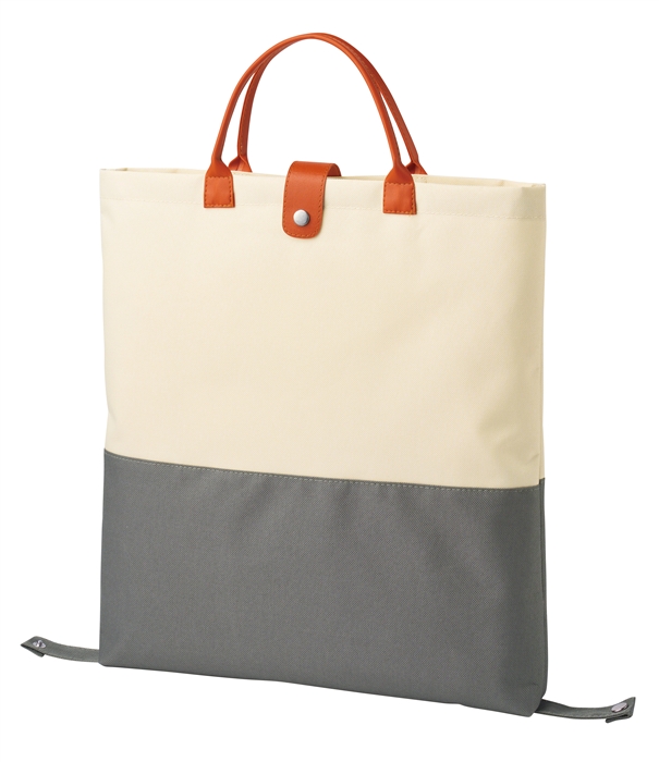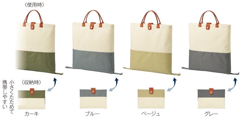 荷物が少ない時はフラットトートとして、増えたら底面のボタンを留めれば舟形になって容量UP!普段使いから、荷物が増えた時のサブバッグに最適な2WAYバイカラーバッグです。使わない時はコンパクトにたためます。4色のアソートカラーで、名入れ印刷も可能。通勤やお買い物に大活躍するバッグです。