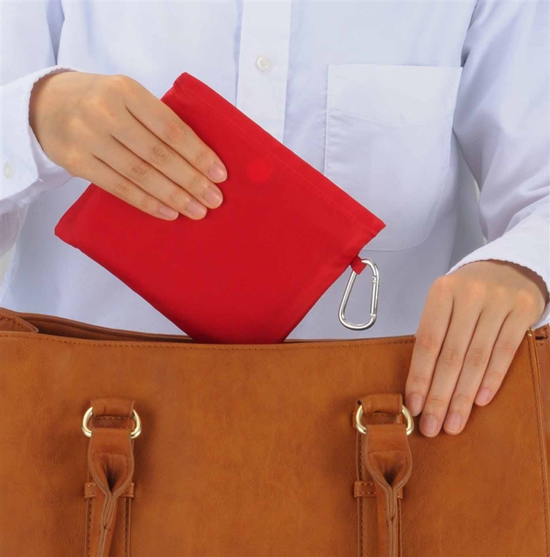 折りたたんでカラビナでカバンに引っ掛けておくこともできます。まとめ買いの日にも安心の大容量サイズです。肩掛けできるので大荷物でもラクラク。Ecolorシリーズは環境(Environment)に配慮する社会で活躍するエコバッグです。