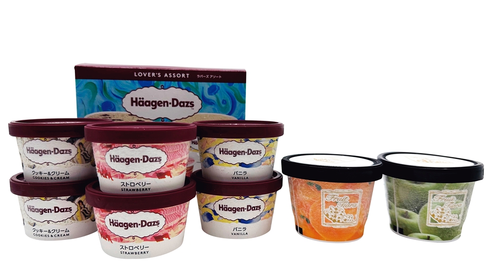 | 備考 | <セット内容> ハーゲンダッツラバースアソート(バニラ・ストロベリー・クッキー&クリーム)各70ml×各2、フルーツティアラソルベ(青リンゴ・ミカン)各108ml×各1 |