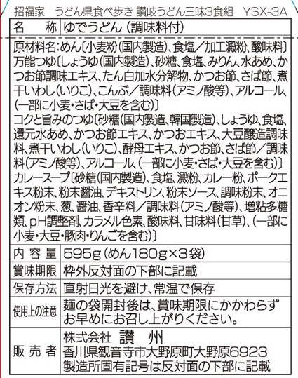 | 備考 | <セット内容> 生タイプゆでうどん180g×3 カレーうどんスープ15g×1 ぶっかけうどんつゆ20ml×1 釜玉用万能つゆ20ml×1 |