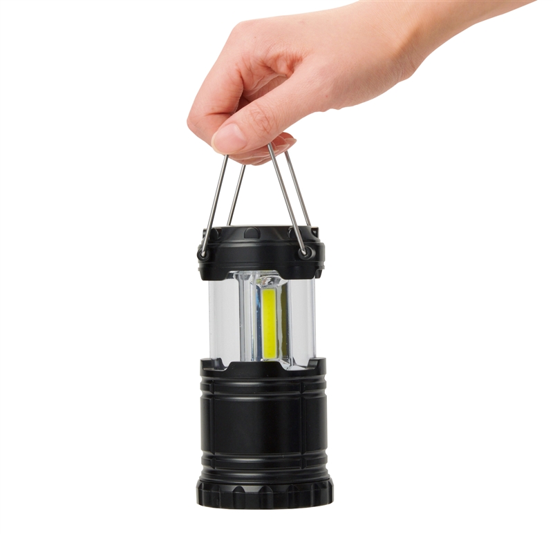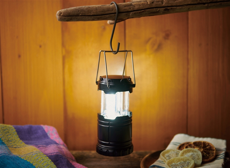 引き上げてパッと点灯!コンパクトサイズでも頼れる明るさ。置き型・吊り型の2WAYで使えます。