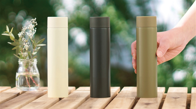 お散歩やウォーキングに!絶妙なニュアンスカラーがおしゃれでシンプル&スリムな真空ボトル。