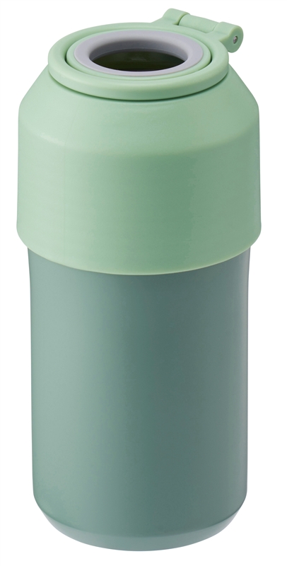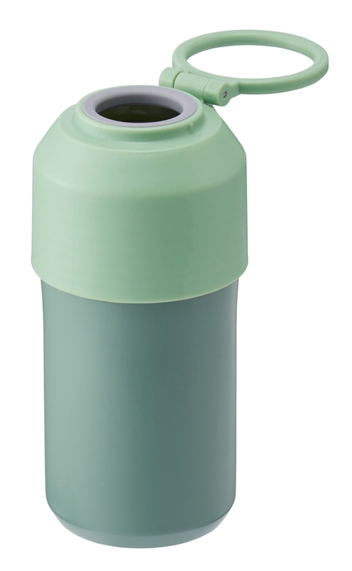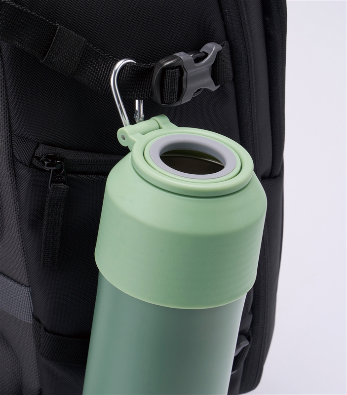 フタを締めればペットボトルを固定でき、フタの深さでサイズ調整が可能です。外せば通常の真空ステンレスタンブラーとしてもお使いいただける便利な2WAY仕様。収納できるハンドルと、使用前後の持ち運びに便利なカラビナ付きで、アウトドア関連のノベルティにおすすめです。