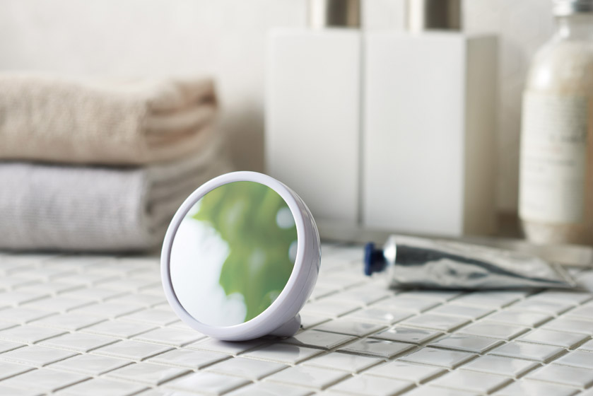 鏡に浮かび上がる表示がおしゃれ。