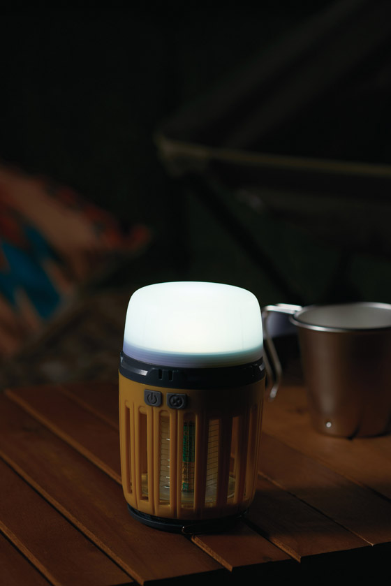 虫を光に誘いやっつける虫誘引ライトと、