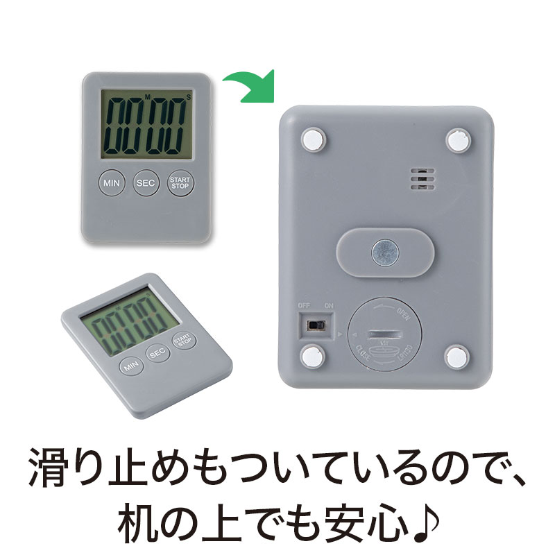 大きめ画面で見やすく、カウントアップだけでなくカウントダウンも機能あり。背面マグネット付き