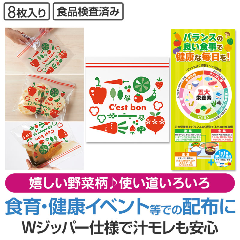 健康な毎日を!野菜柄ジッパーバッグ(8枚入り)